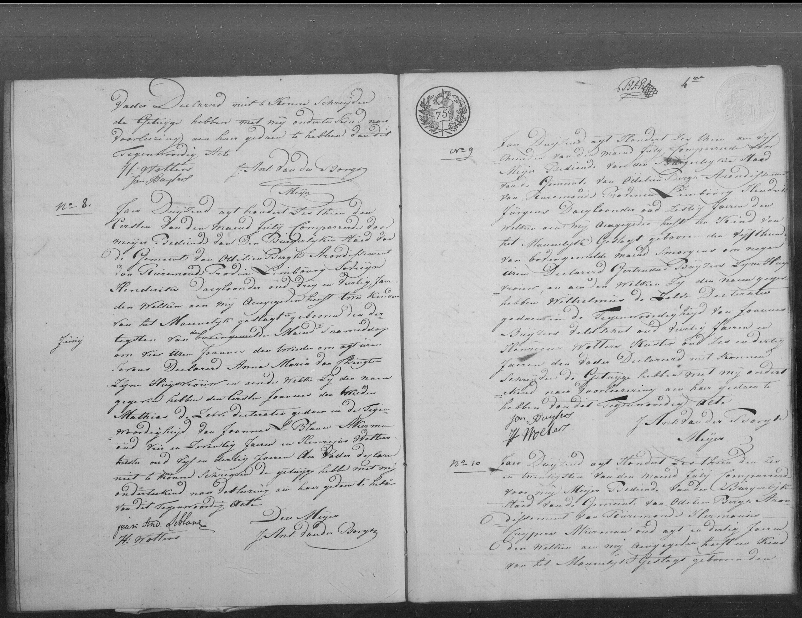 Het kind is geboren op 18 februari 1815 om 16:00 uur. Aangifte vond plaats op 19 februari 1815 om 08:00 uur. De vader was ten tijde van de aangifte 70 jaar oud ('Soixante dix ans'). De woorden 'Departement de la Meuse Inférieure' zijn in de originele akte doorgestreept door de ambtenaar, passend bij de historische overgang na het vertrek van de Fransen begin 1815. De vader en beide getuigen verklaarden niet te kunnen schrijven.