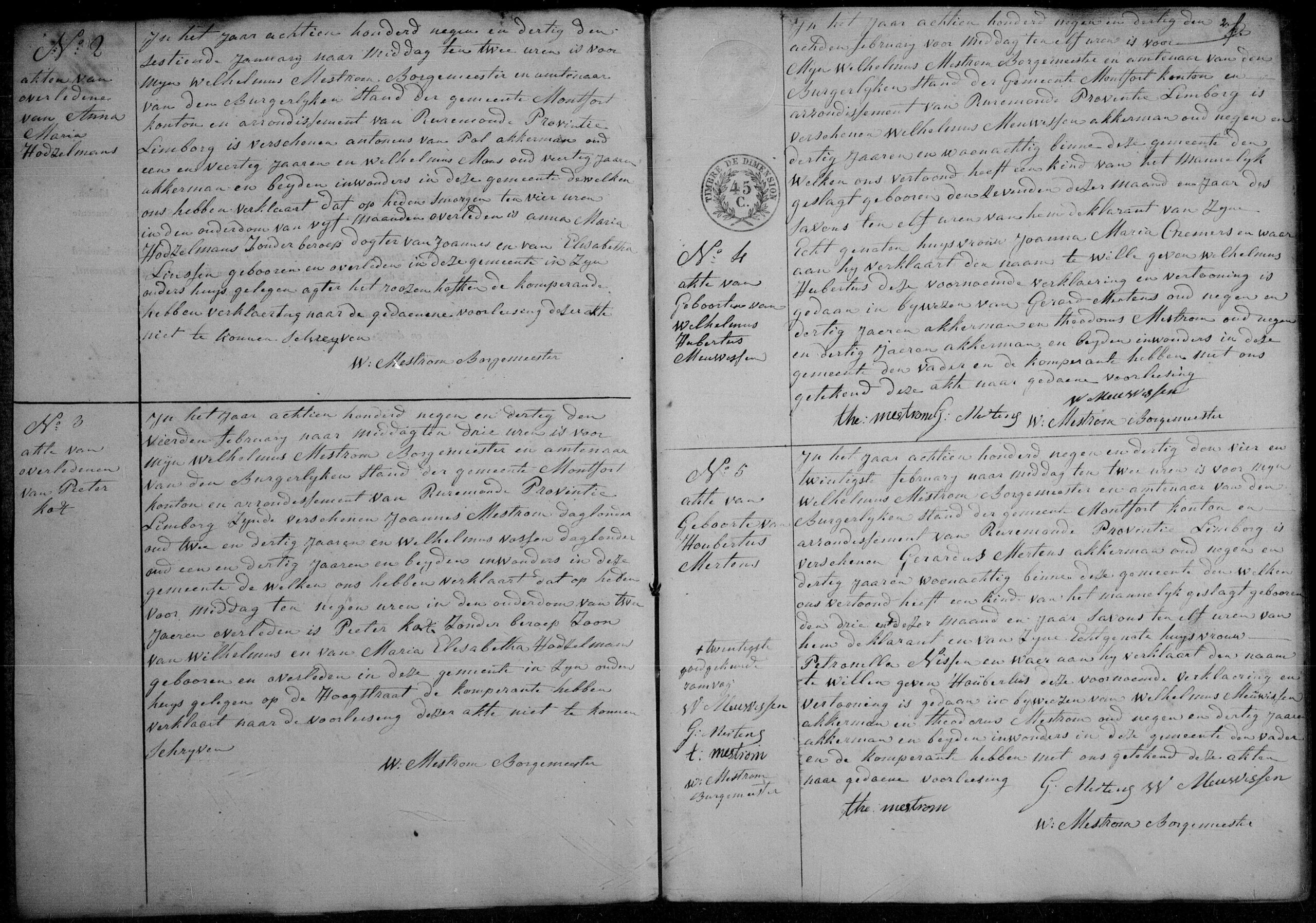 Getuigen: Wilhelmus Meuwissen, akkerman uit Montfort en Theodorus Mestrom, 39 jaar oud, akkerman uit Montfort.