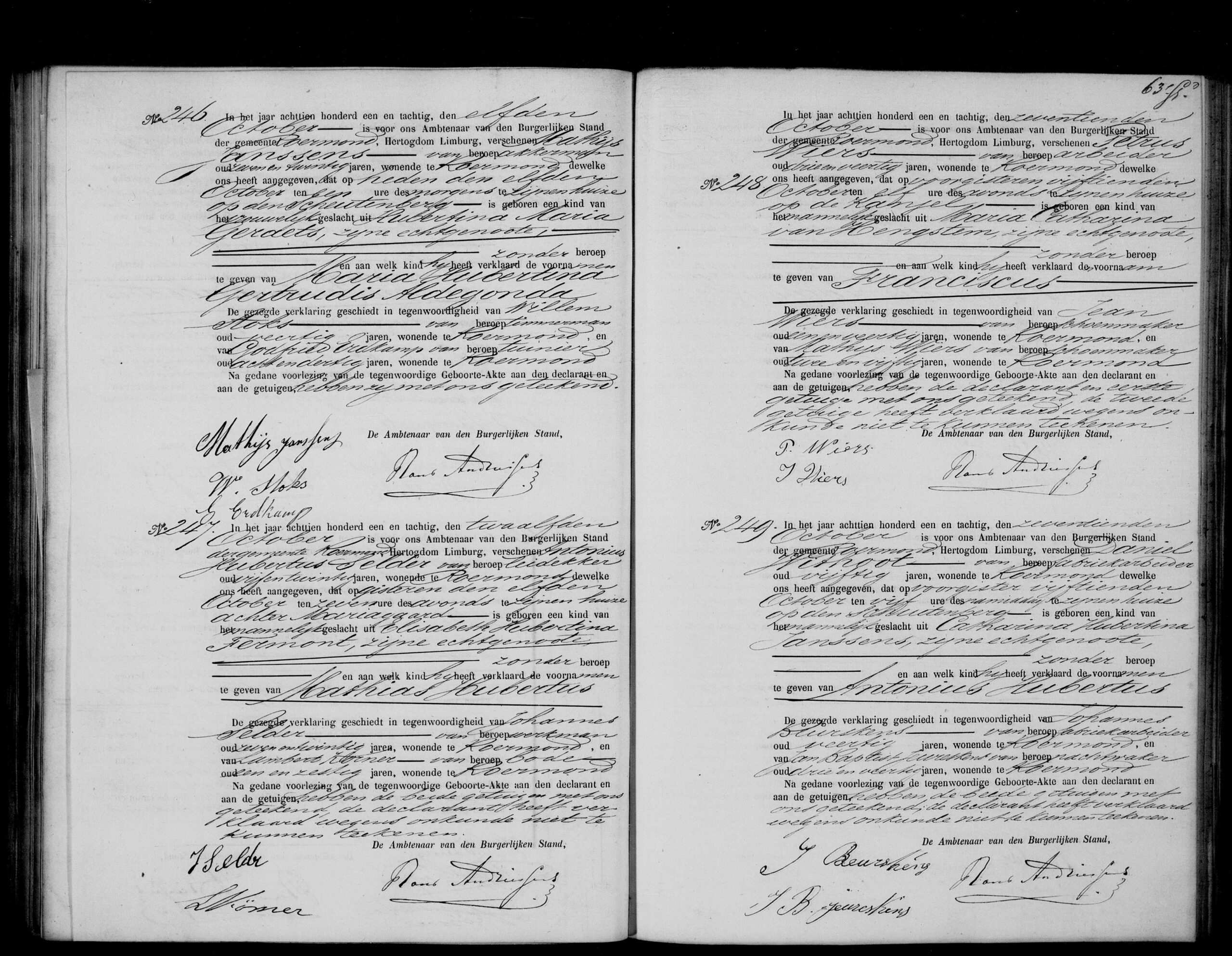 Getuigen: Johannes Beurskens, 40 jaar oud, fabrieksarbeider uit Roermond en Jan Baptist Beurskens, 43 jaar oud, nachtwaker uit Roermond.
