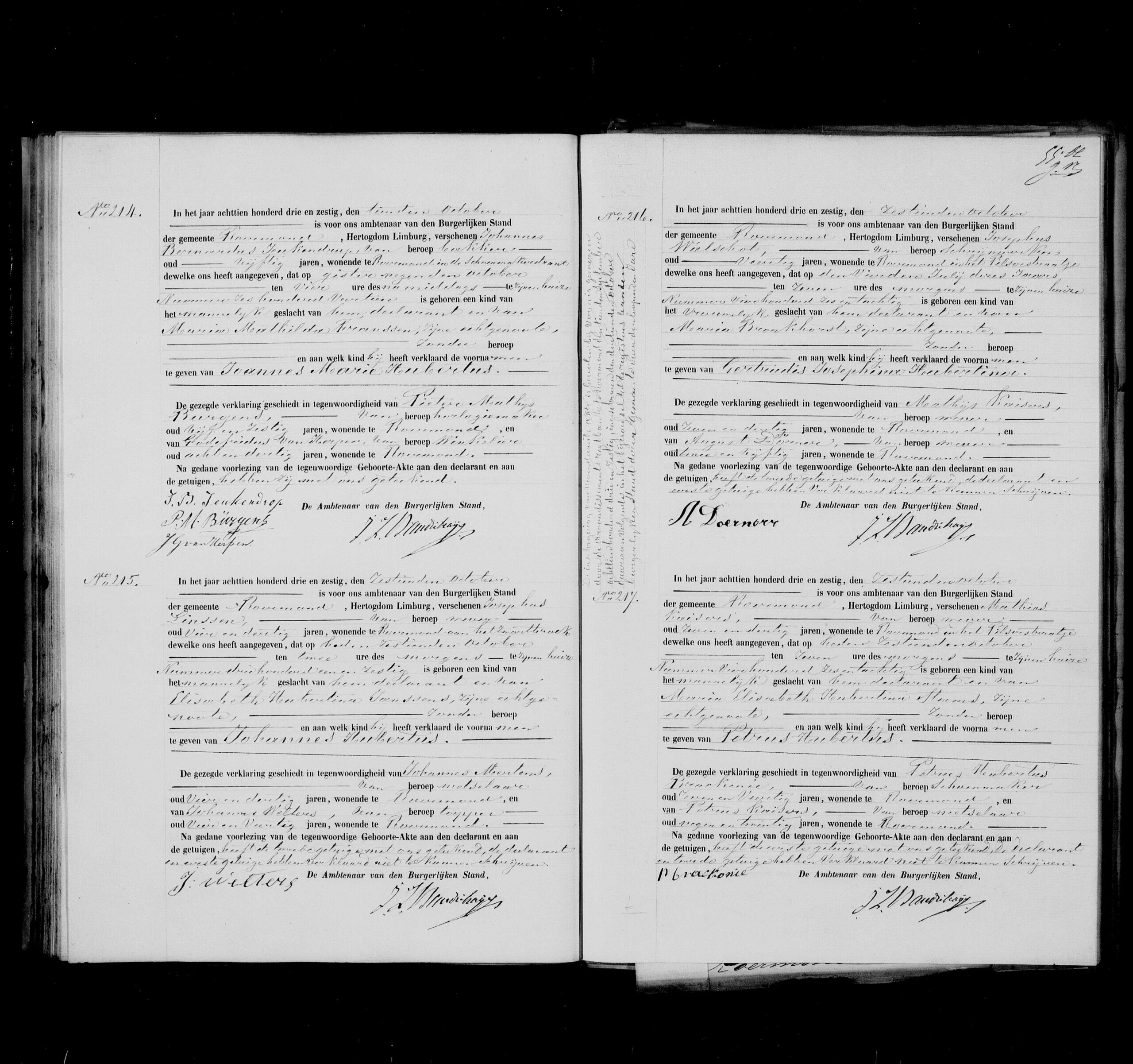 Getuigen: Johannes Mertens, 34 jaar oud, metselaar uit Roermond en Johannes Wolters, 44 jaar oud, tapper uit Roermond.