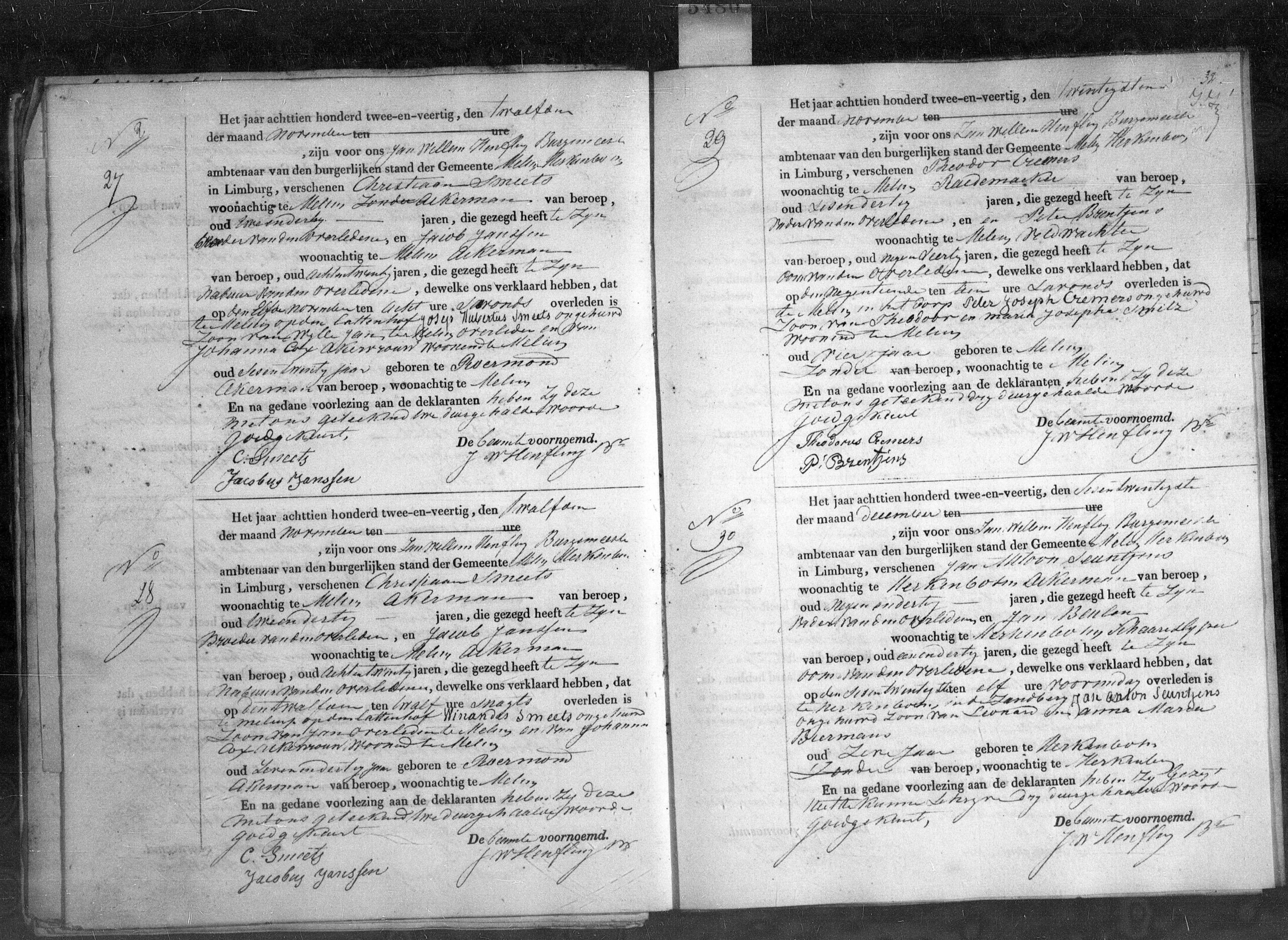Getuigen: Theodorus Swinkels, 32 jaar oud, schaarslijper uit Herkenbosch, geen en Jan Beulen, 21 jaar oud, schaarslijper uit Herkenbosch, geen.