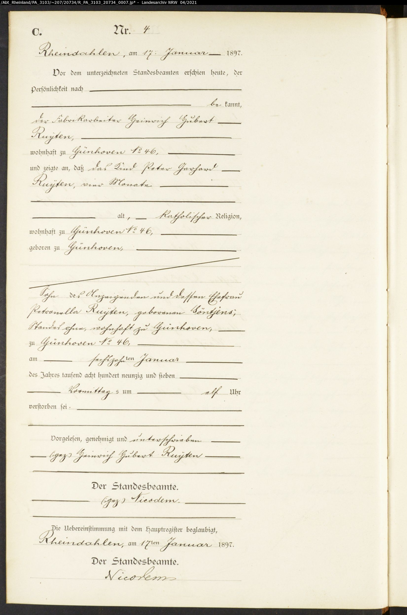 Overlijden: 16 januari 1897 in Rheindahlen