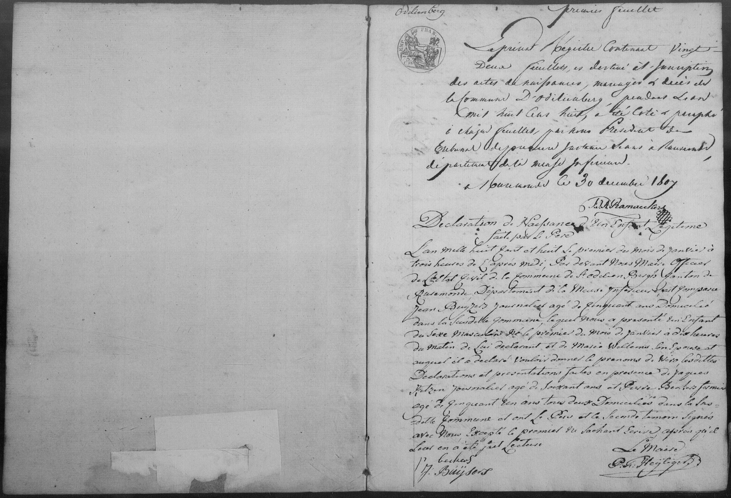 Getuigen: Jaques Kitzen, 60 jaar oud, dagloner uit Sint Odiliënberg en Pierre Beckers, 51 jaar oud, pachter uit Sint Odiliënberg.