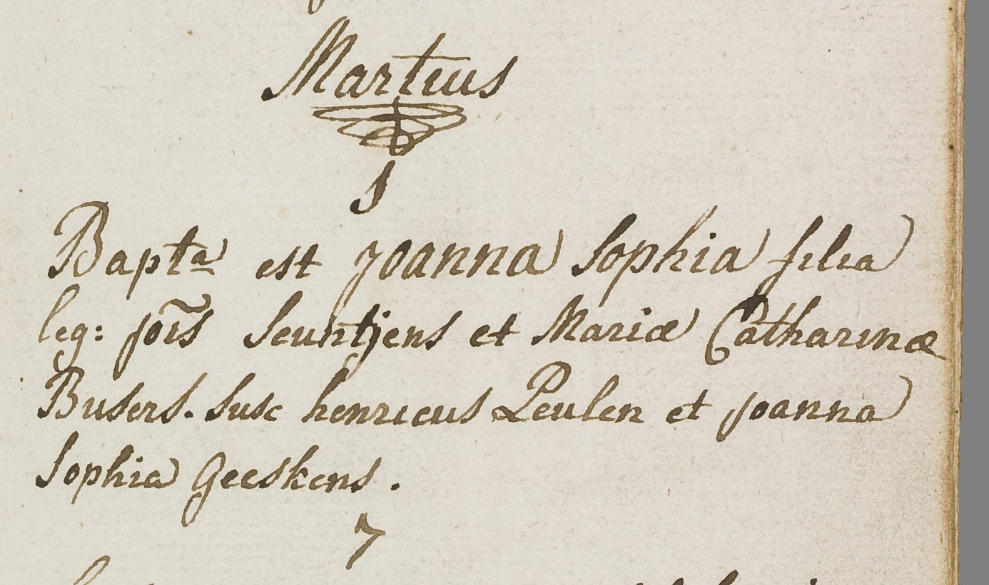 Joanna Sophia Seuntjens werd gedoopt op 1 maart 1808 in Budel als dochter van Jan Seuntjens en Maria Catharina Busser.