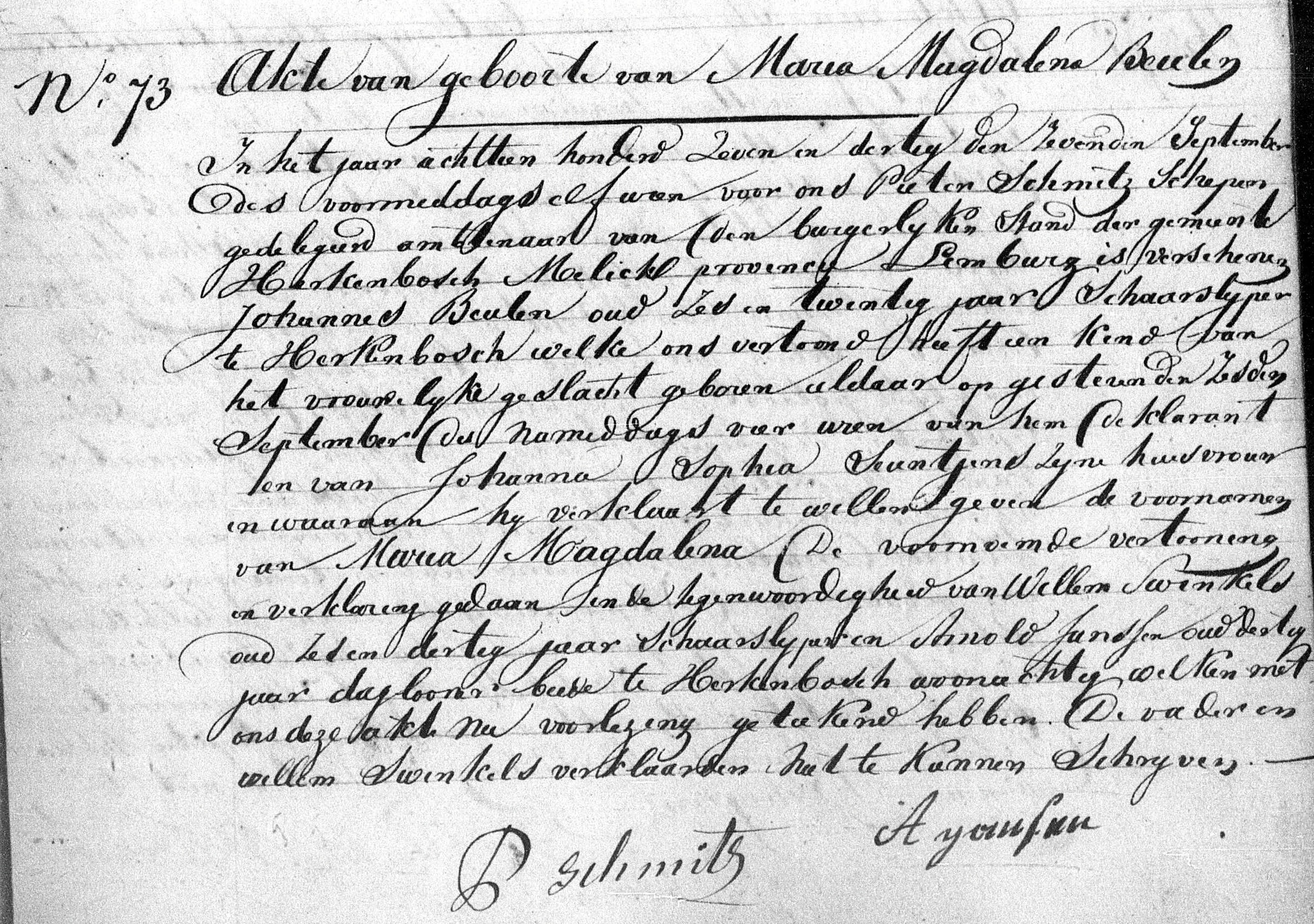 Getuigen: Willem Swinkels, 36 jaar oud, scharenslijper uit Herkenbosch en Arnold Janssen, 30 jaar oud, dagloner uit Herkenbosch.