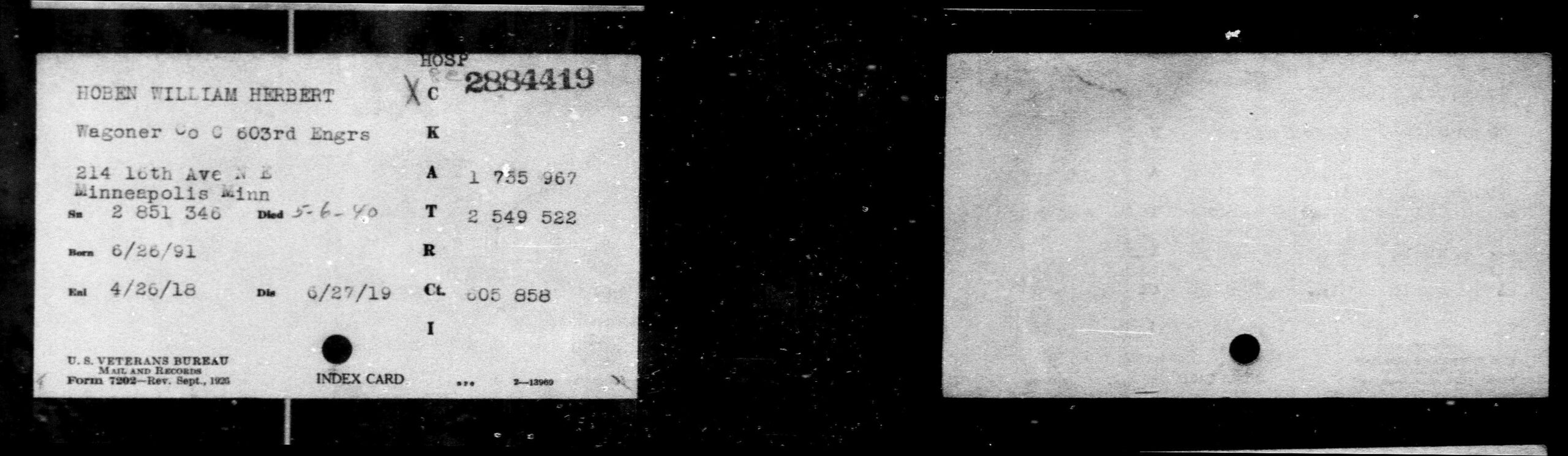 - Bron: S. Veterans Bureau Index Card (Form 7202).