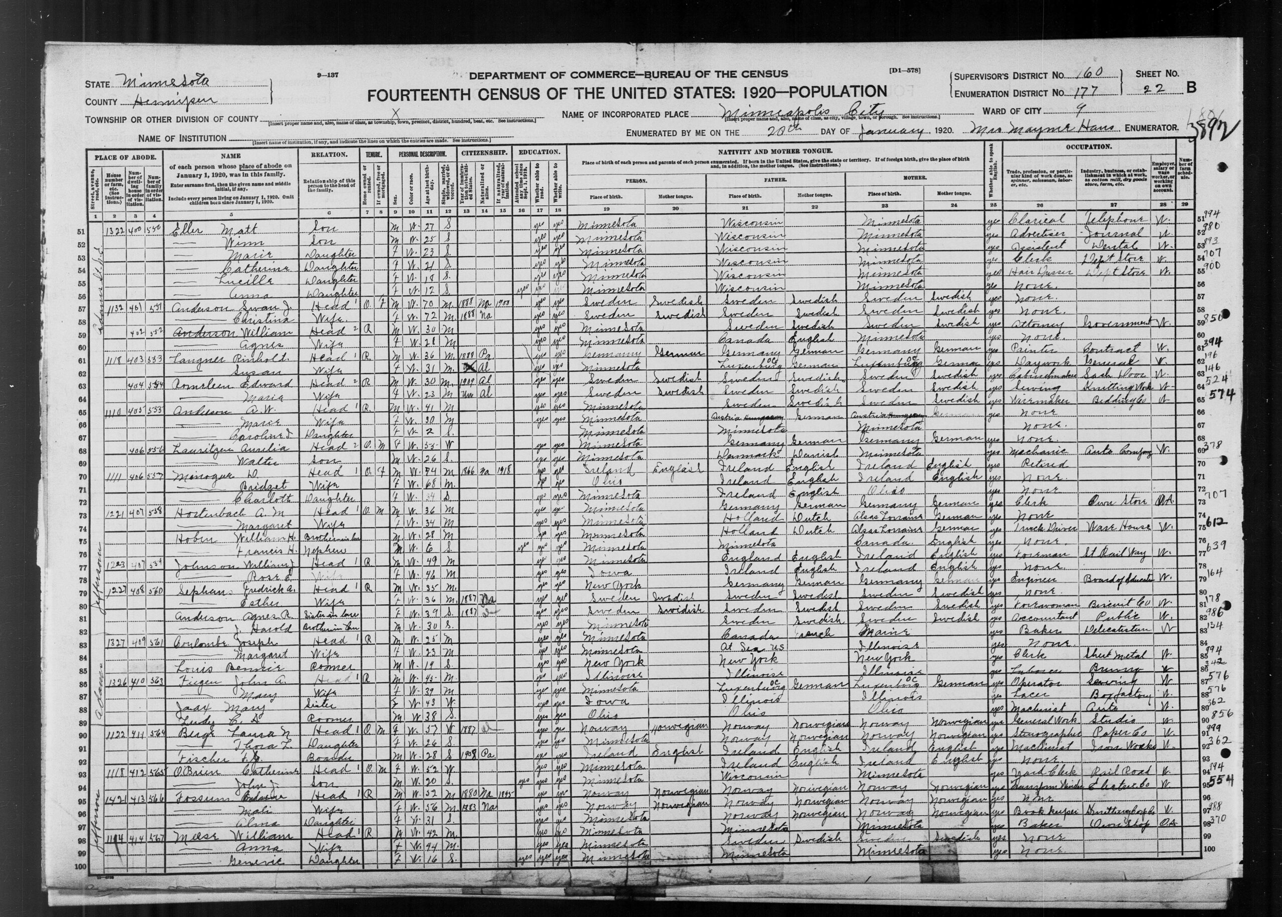 - Werkgever: Accountant bij de Mpls Brewing Co. (Minneapolis Brewing Company).