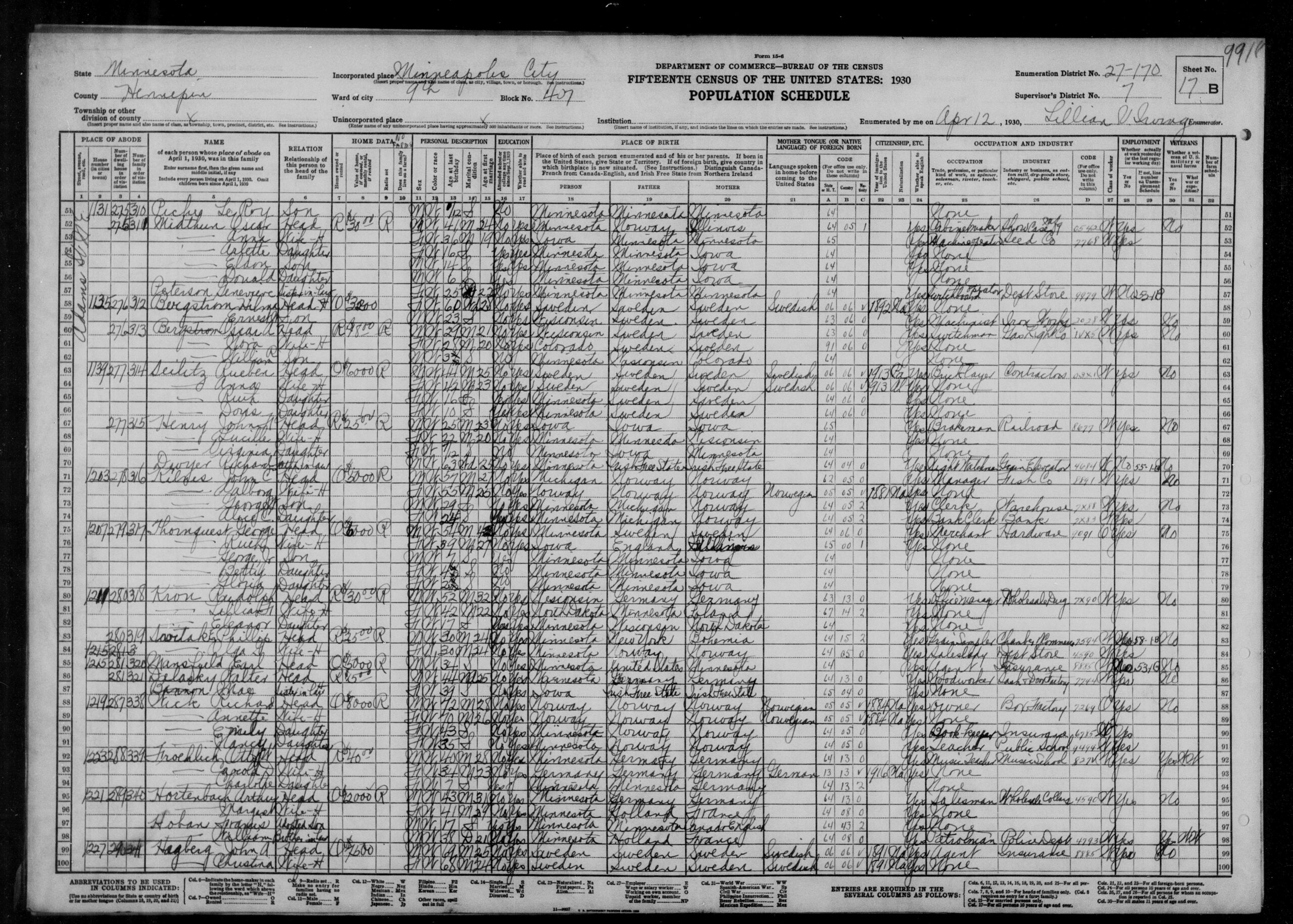 - Leeftijd: 37 jaar (geboren ca. 1913 in Minnesota).