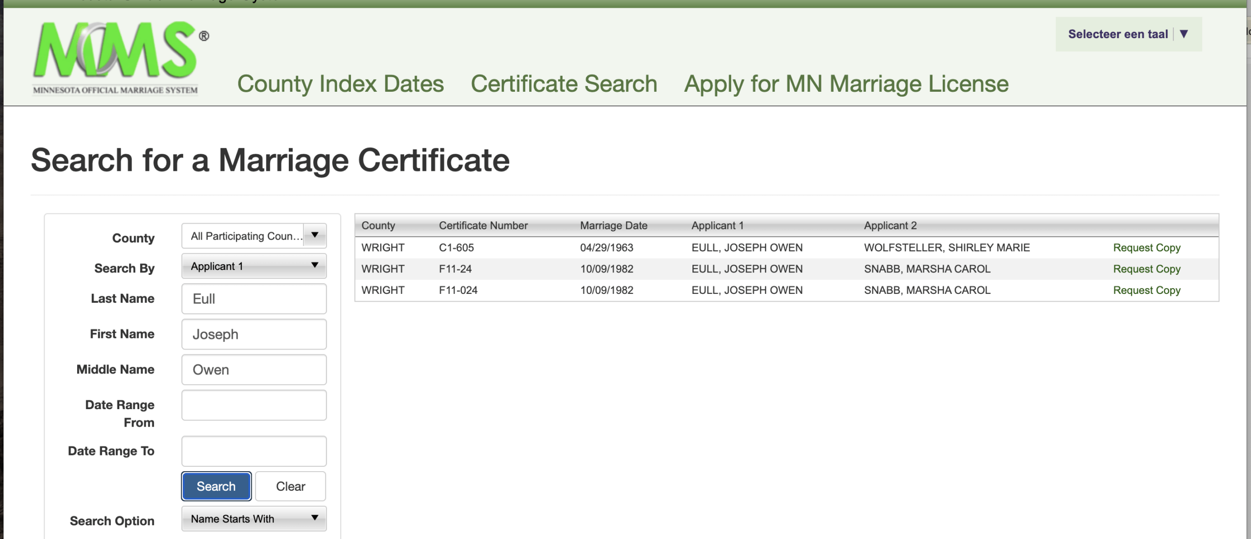 XII.14 Joseph Orville Eull ♂📜 Historische Tijdlijn