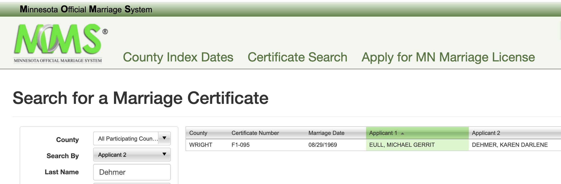 Burgerlijk huwelijk: 29 augustus 1969 in Wright, Minnesota, USA