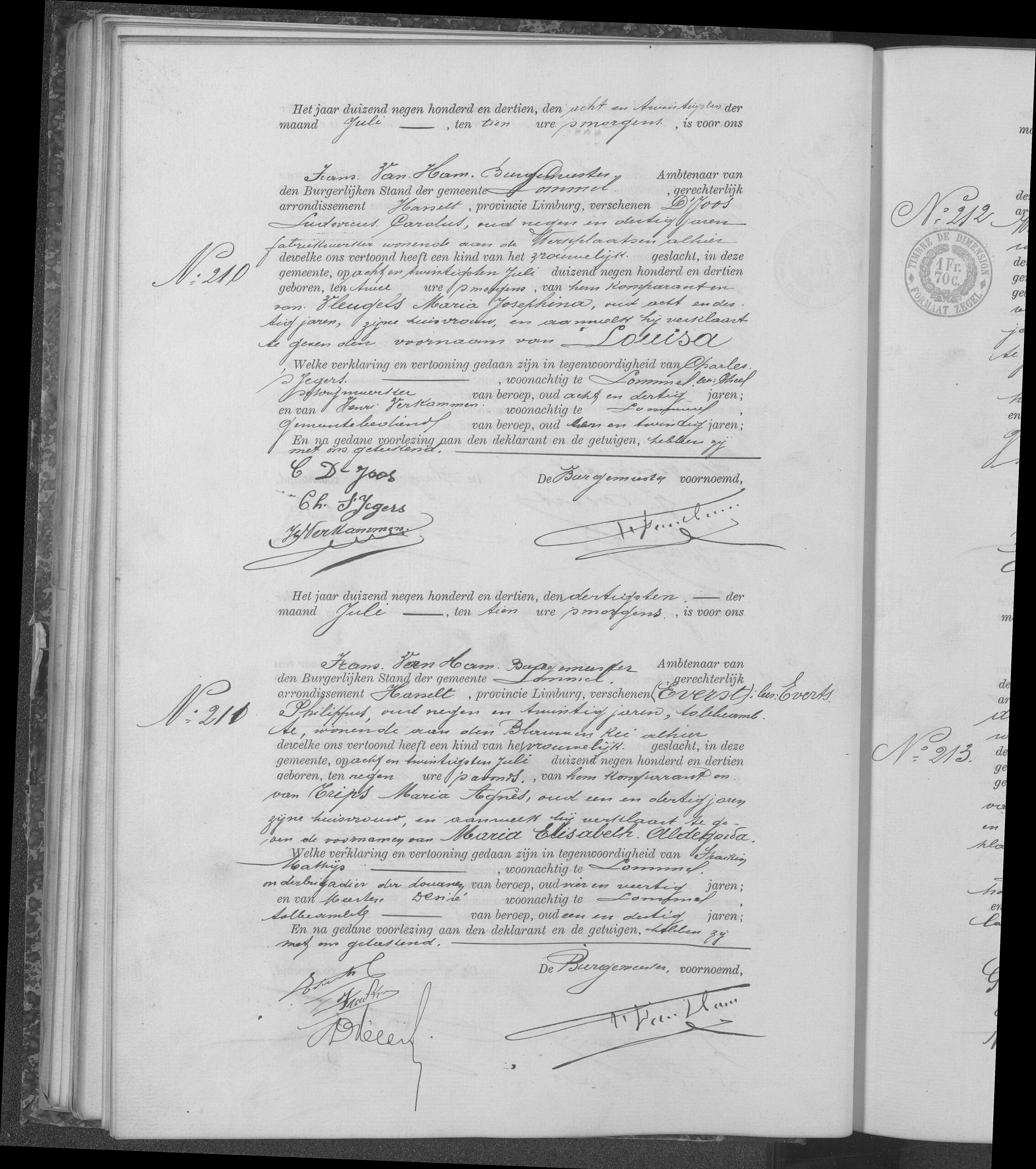 Getuigen: Mathijs Franssen, 44 jaar oud, onderbrigadier van de douane uit Lommel en Desiré Meertens, 31 jaar oud, tolbeambte uit Lommel.
