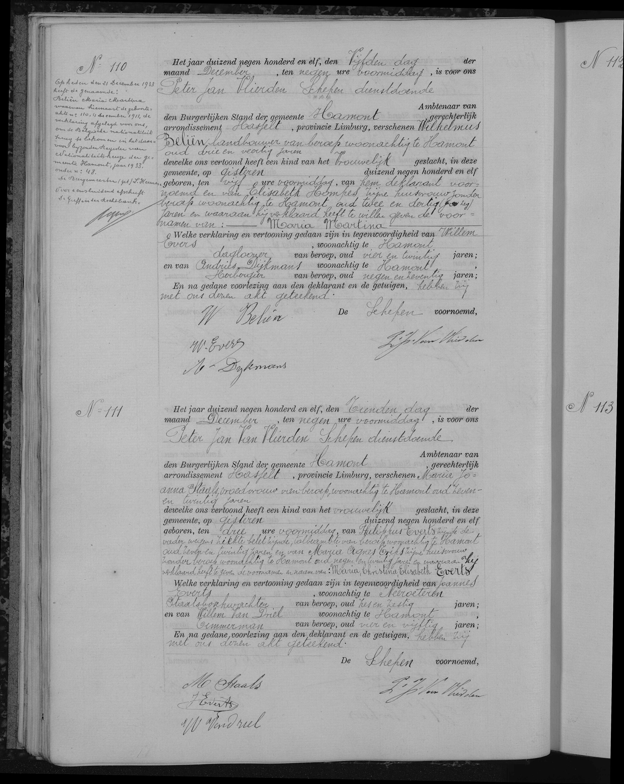 Getuigen: Joannes Everts, 66 jaar oud, staatsboswachter uit Neeroeteren en Willem Van Driel, 54 jaar oud, timmerman uit Hamont.