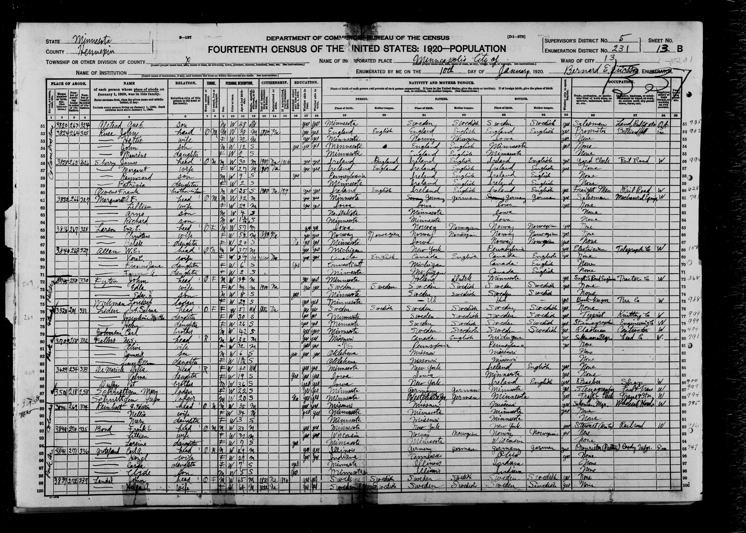 Bron(nen): 1920 US Census, Minneapolis, Minnesota.