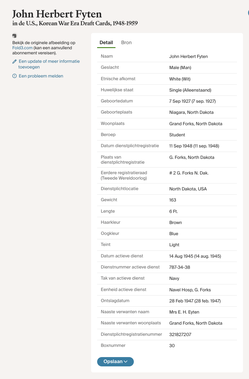 Bron(nen): WWII Draft Card (1946) en Korean War Era Draft Card (1948) van zoon John Herbert.