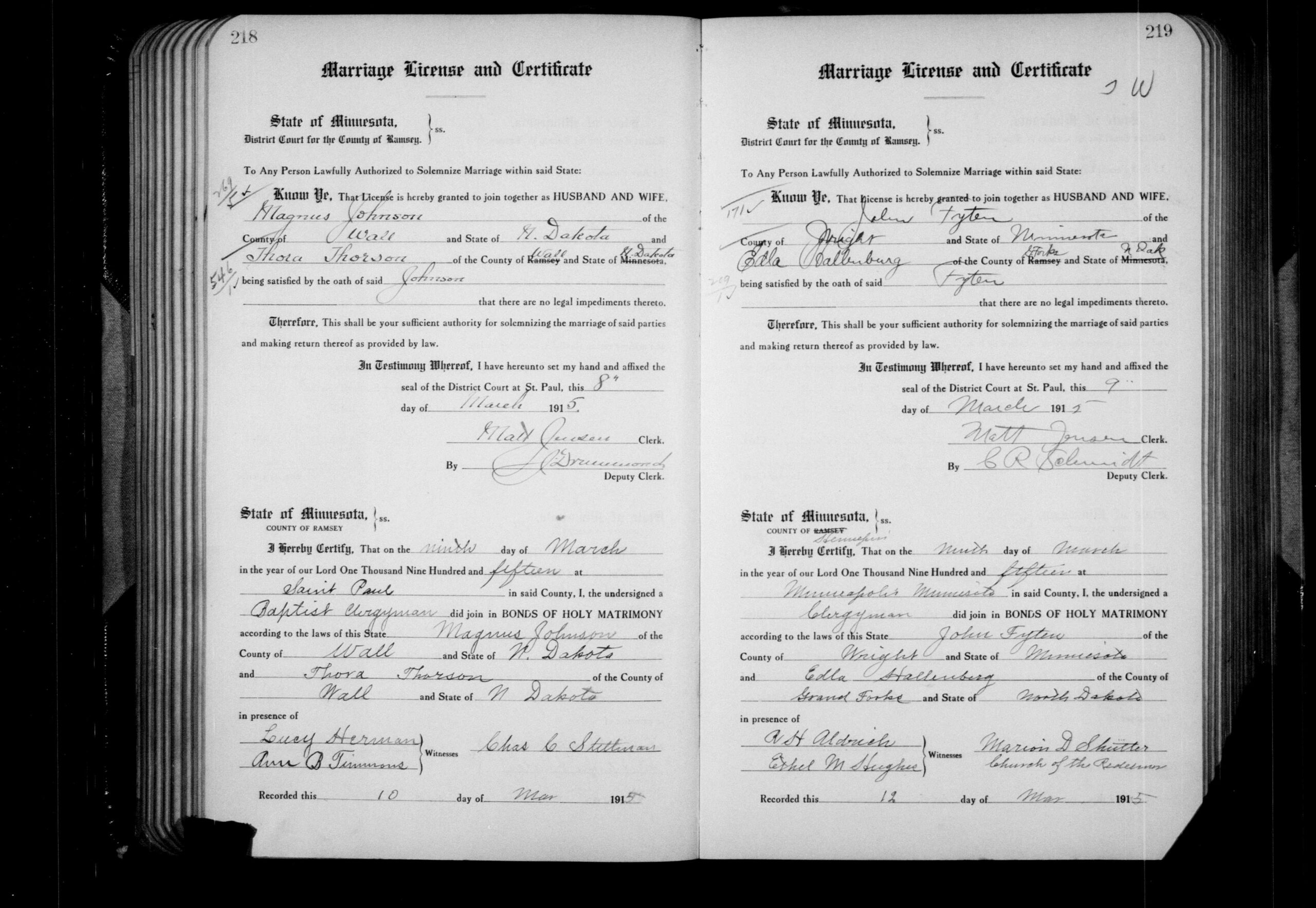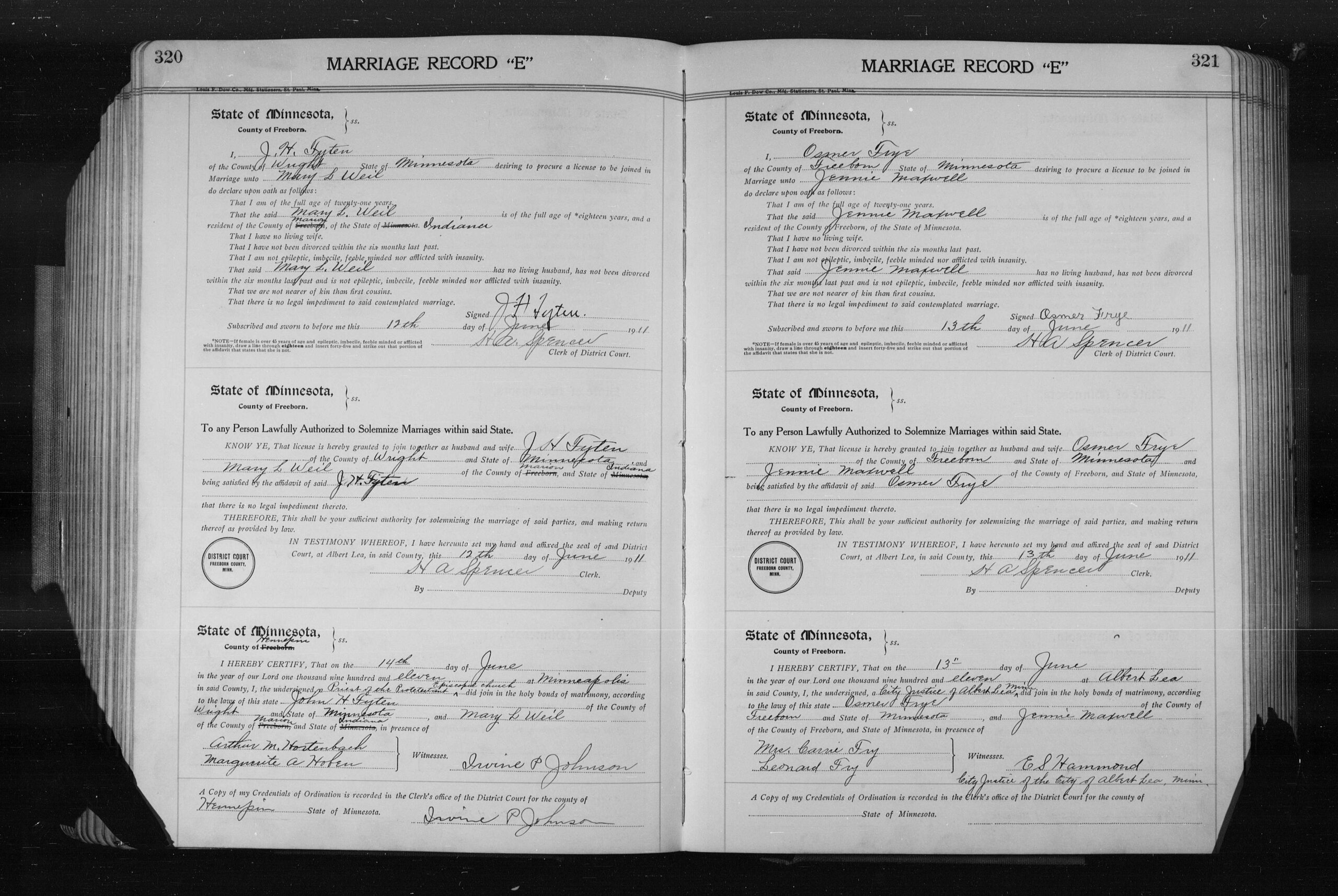 Het gezin is terug in Minneapolis en huurt een huis voor $55 per maand. John (genoteerd als John H. Fyten) werkt als handelsreiziger (Commercial Traveler) voor een autogerelateerd bedrijf. Hij woont samen met Edla, stiefzoon Edward (18) en zoon Herbert J. (2).