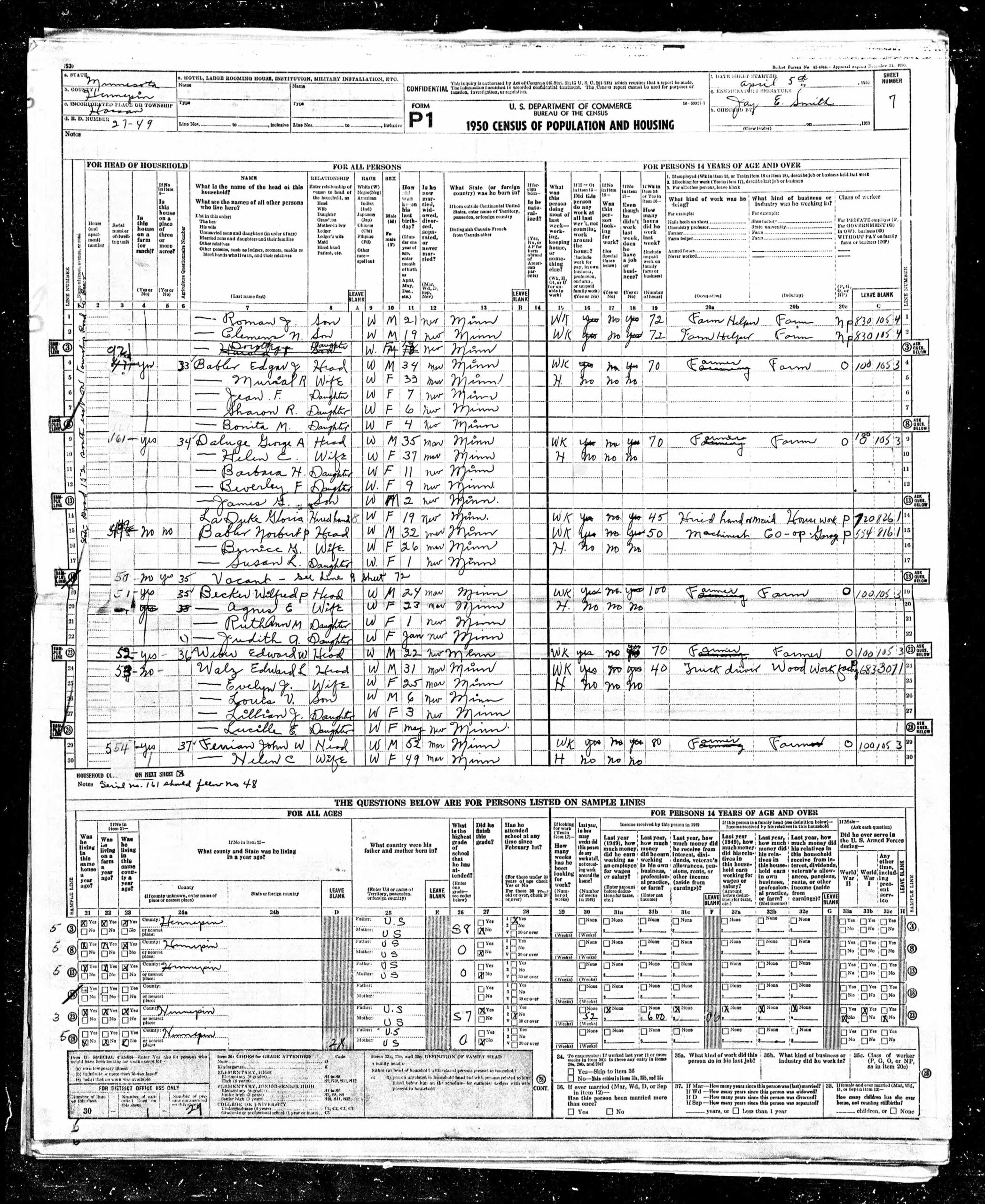 - Gezinshoofd: Edgar J. Babler (34 jaar, boer op een eigen boerderij)