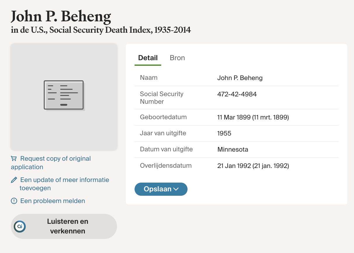 1955: John vraagt op 56-jarige leeftijd een Social Security Number aan in de staat Minnesota.