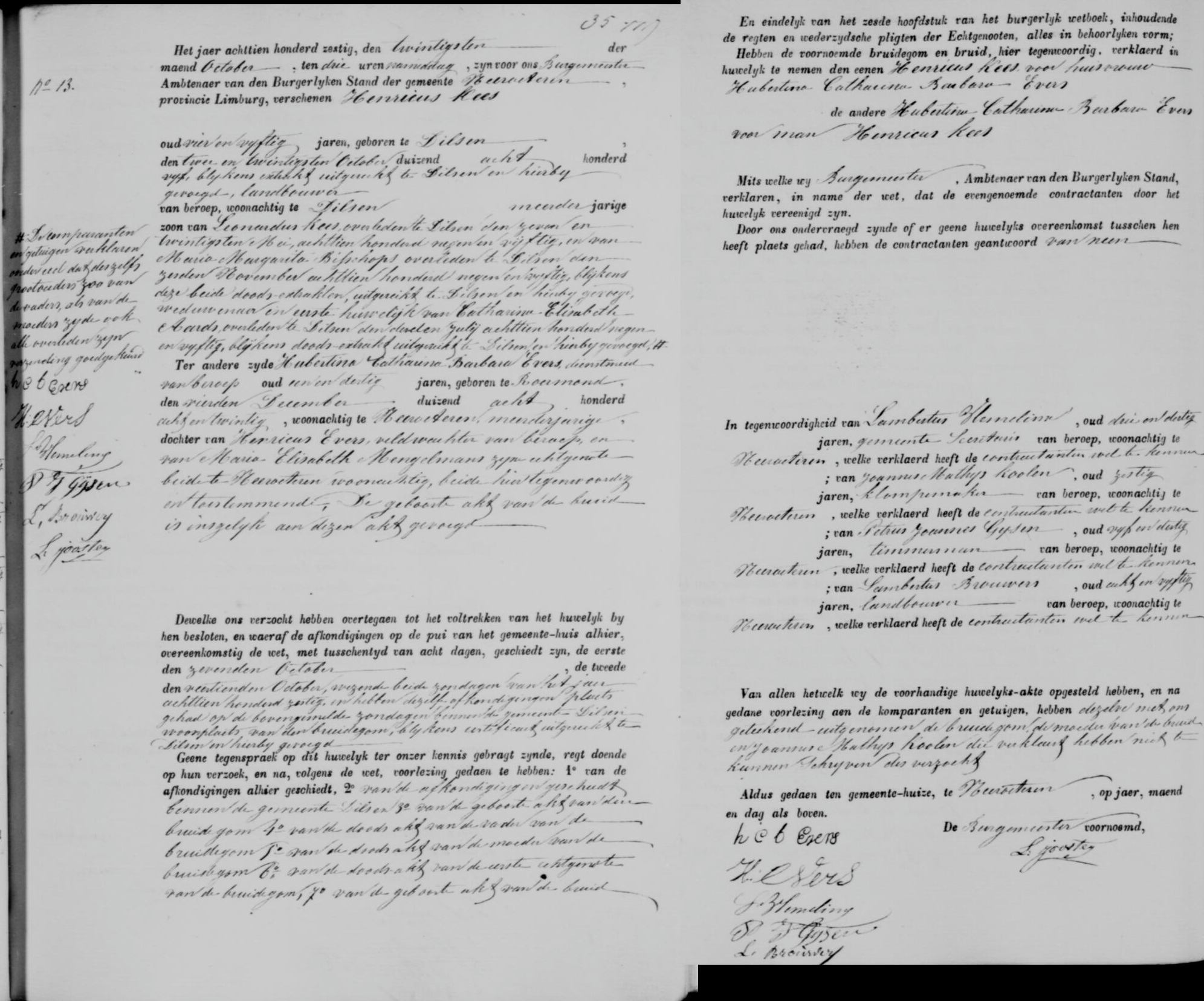 In de kantlijn van de huwelijksakte staat genoteerd: De comparanten en getuigen verklaren onder eed dat de grootouders zowel van vaders- als van de moederszijde ook alle overleden zijn, wegens dien goedgekeurd. Lees onderaan meer hierover.