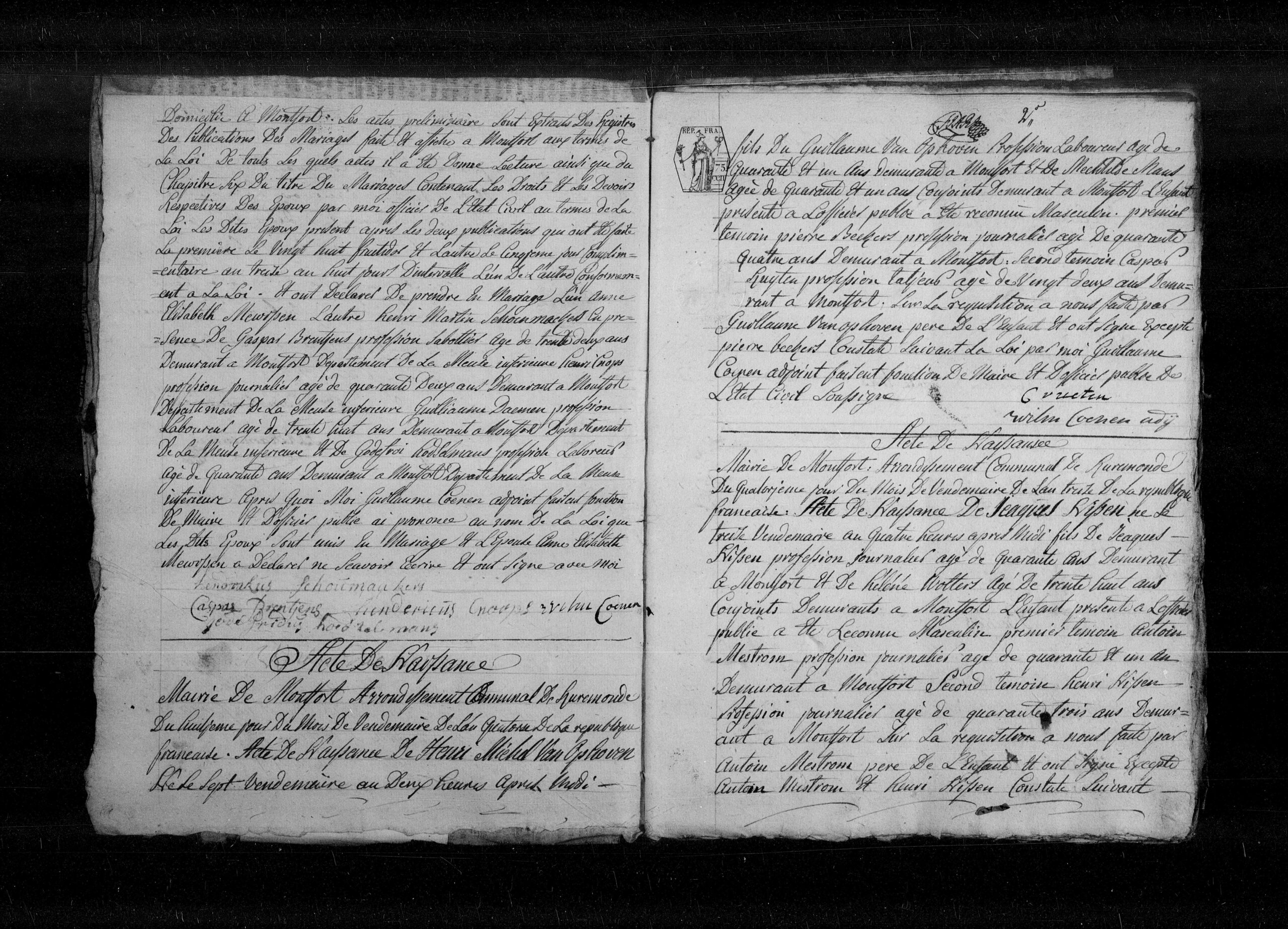 Burgerlijk huwelijk: 28 september 1833 in Montfort