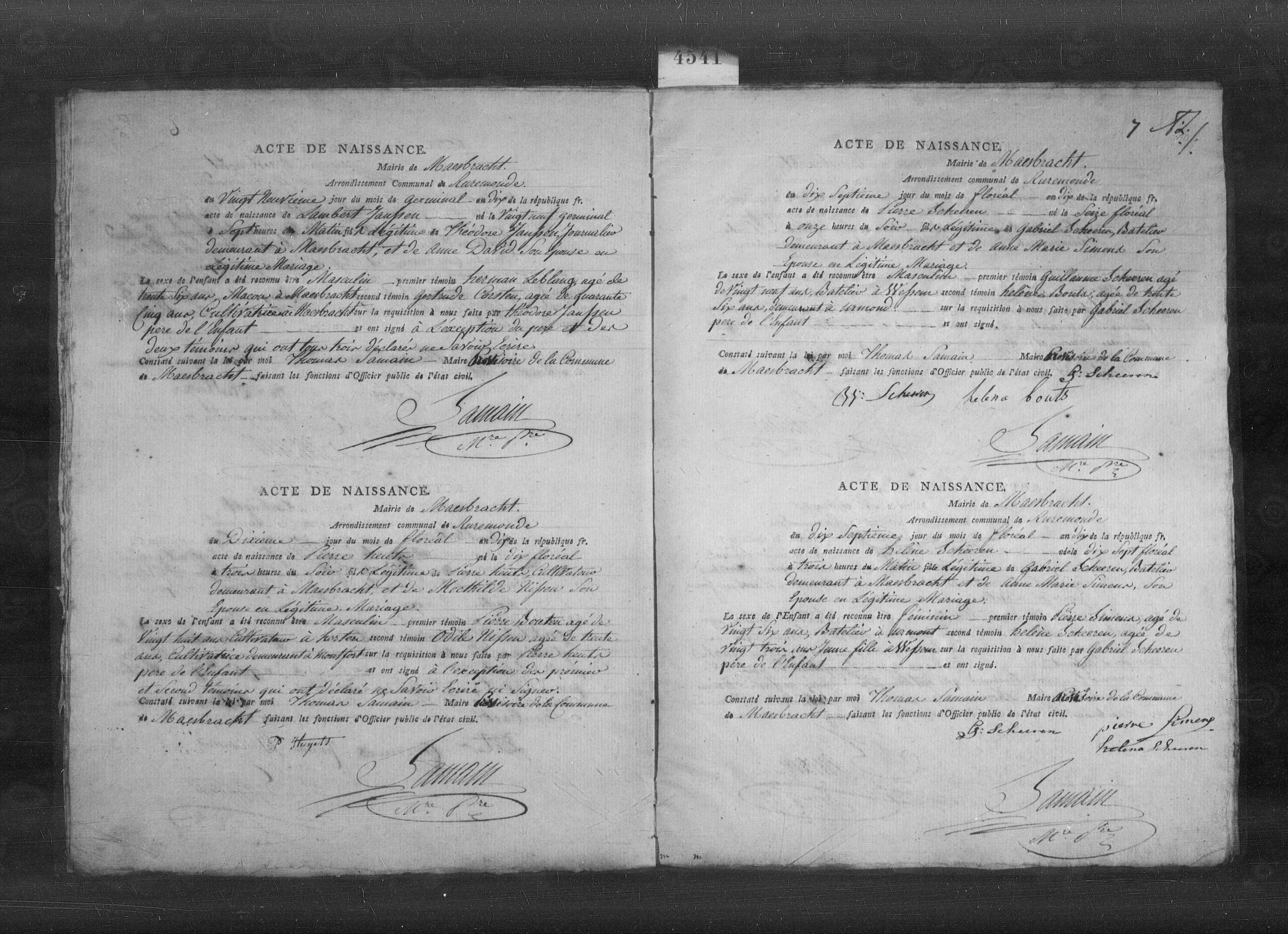 Getuigen: Pierre Beuten, 28 jaar oud, landbouwer uit Herten en Odile Nissen, 30 jaar oud, landbouwster uit Montfort.