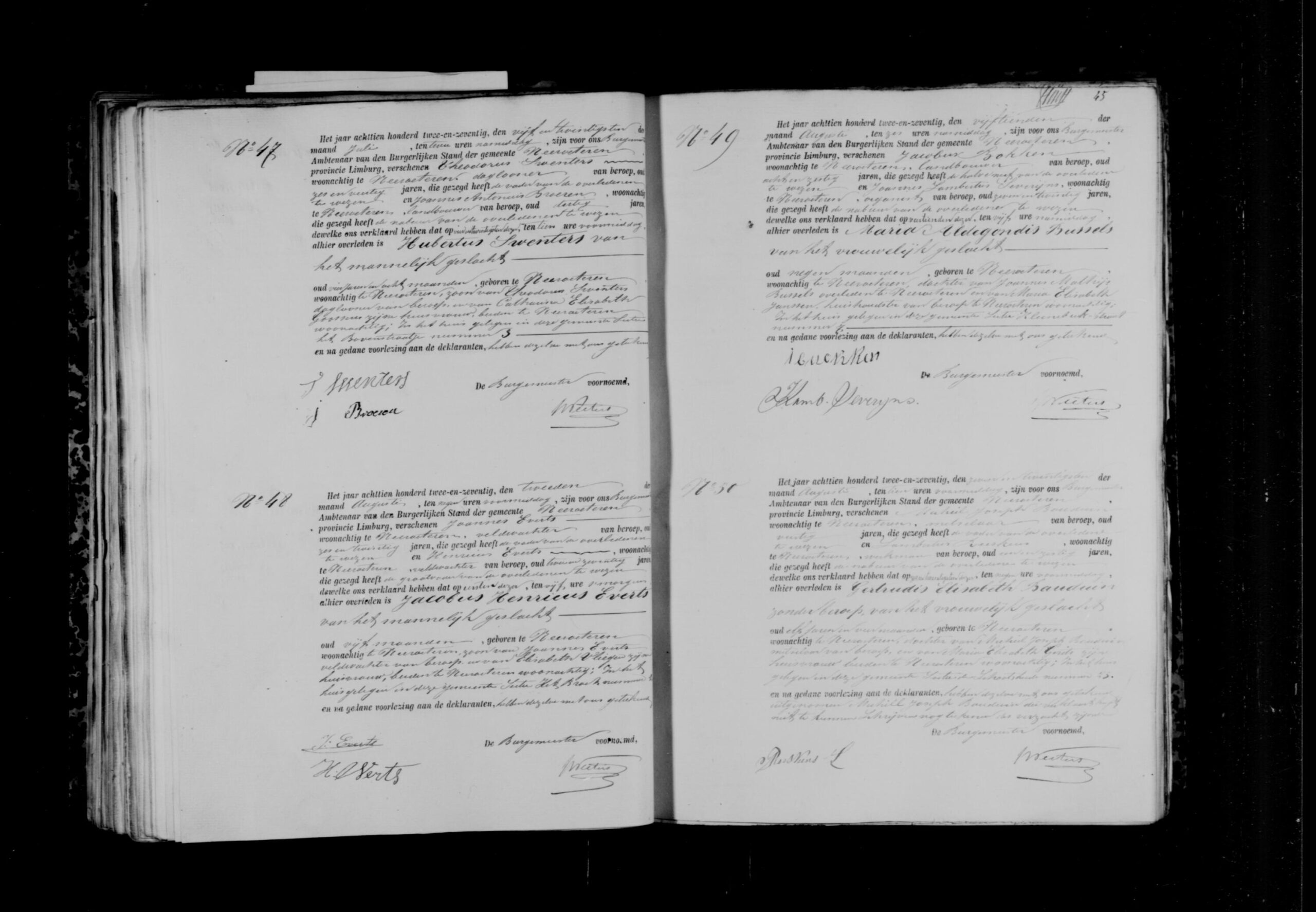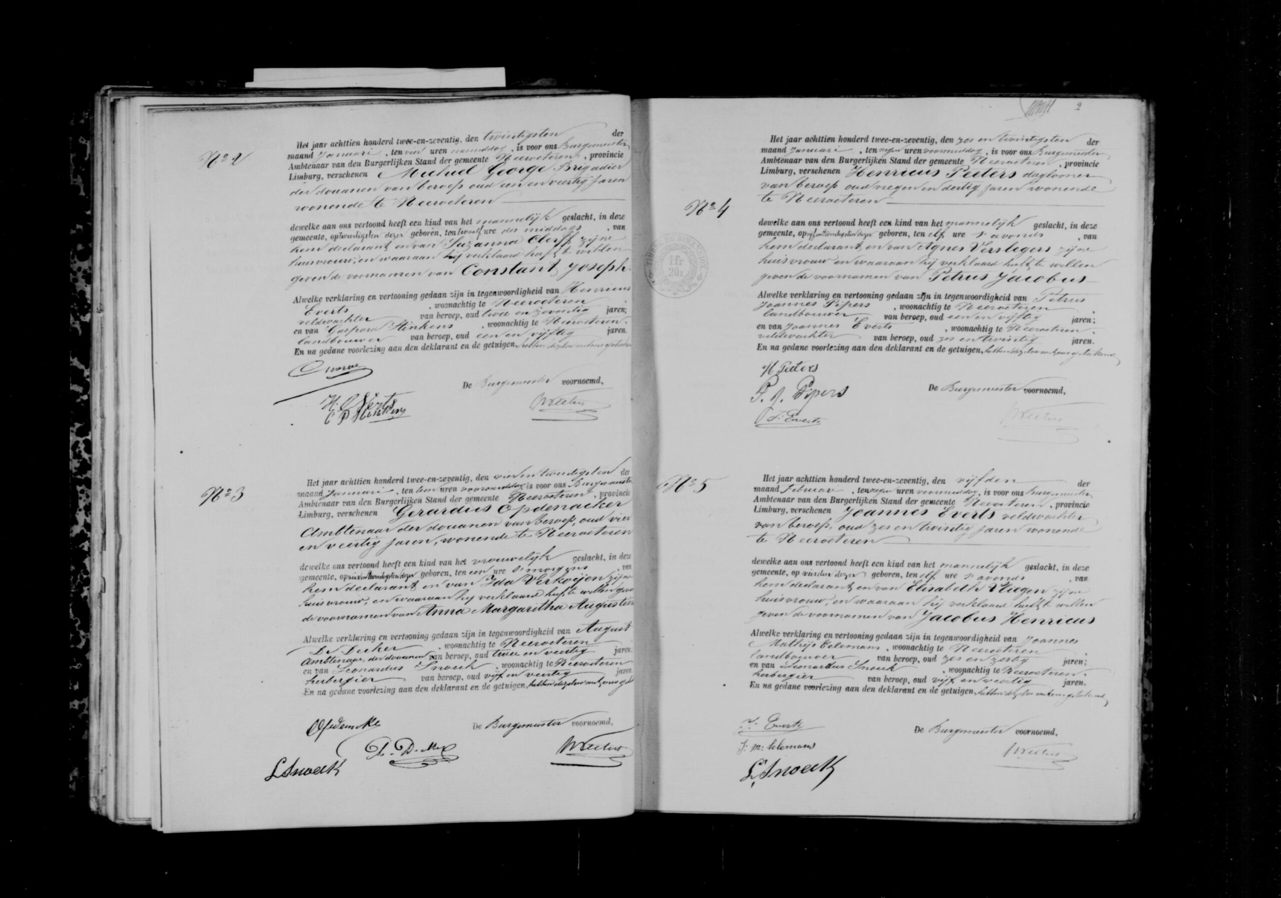 Getuigen: Joannes Mathijs Teleman, 66 jaar oud, landbouwer uit Neeroeteren en Leonardus Snoeck, 45 jaar oud, herbergier uit Neeroeteren.