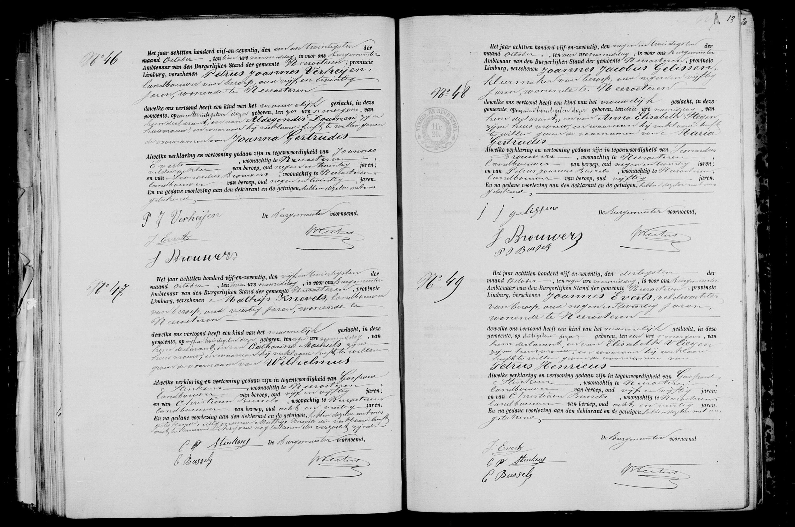 Getuigen: Gasparus Henkens, 55 jaar oud, landbouwer uit Neeroeteren en Christianus Bussels, 48 jaar oud, landbouwer uit Neeroeteren.