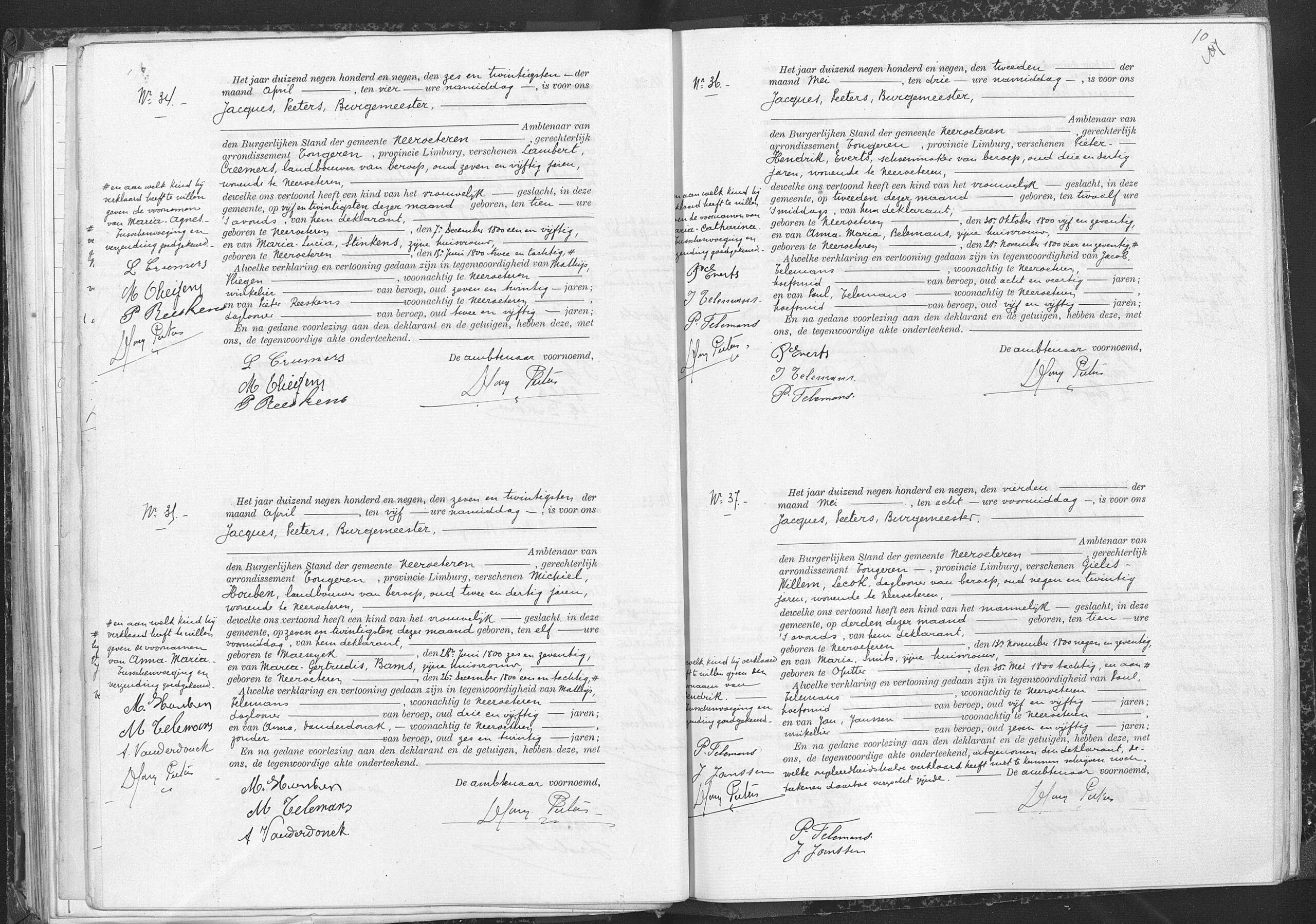 Getuigen: Jacob Telemans, 48 jaar oud, hoefsmid uit Neeroeteren en Paul telemans, 55 jaar oud, hoefsmid uit Neeroeteren.