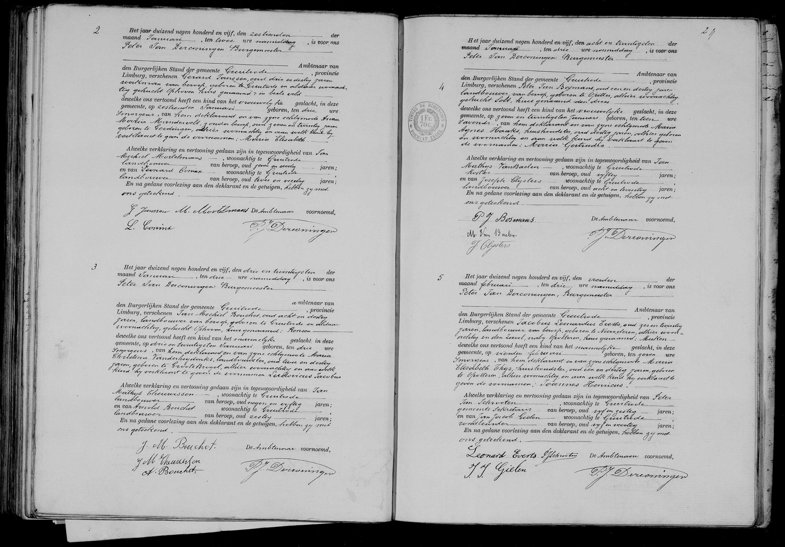 Getuigen: Peter Jan Schrooten, 65 jaar oud, gemeentesecretaris uit Gruitrode en Jan Jacob Gielen, 45 jaar oud, rondleurder uit Gruitrode.