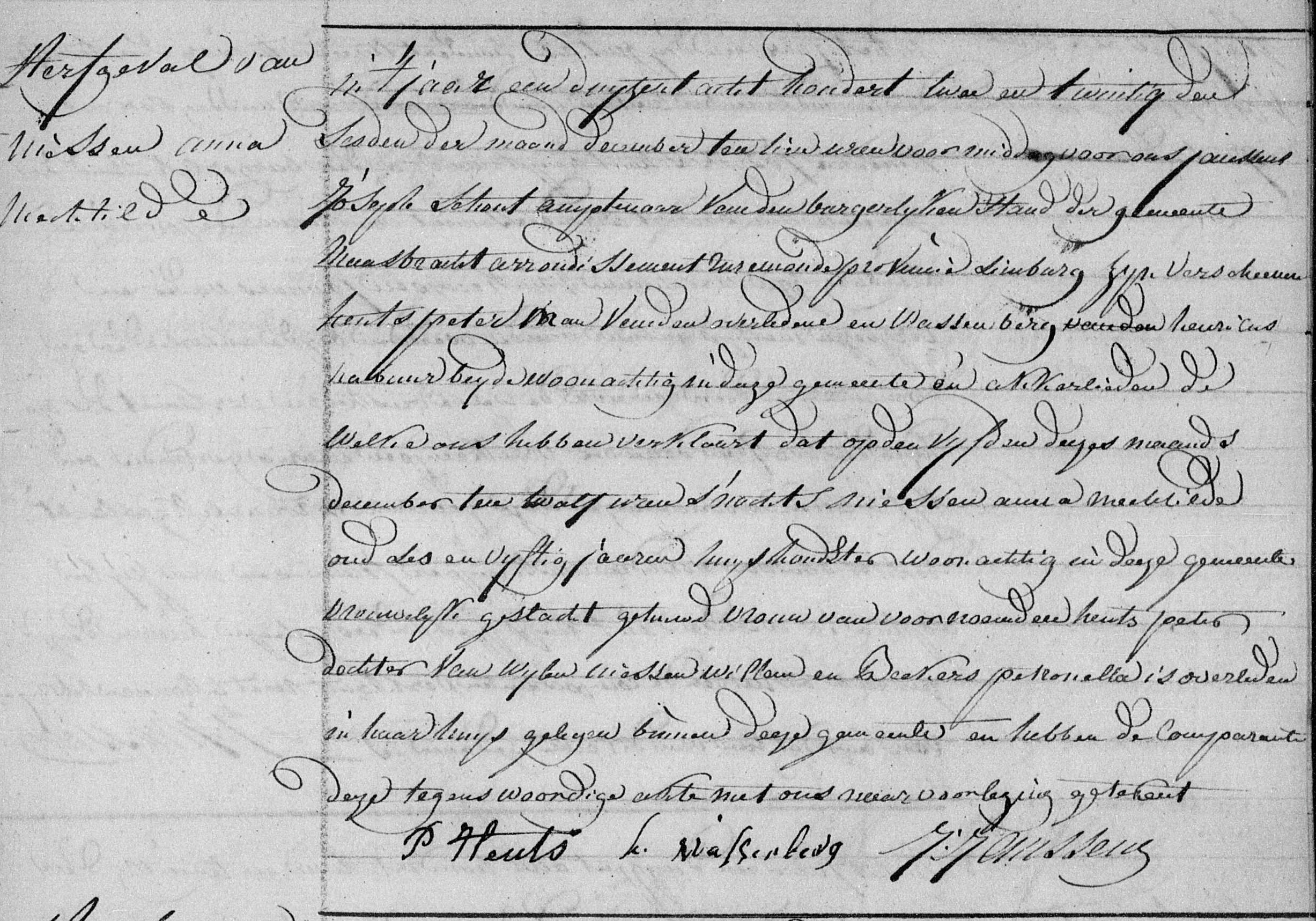 - Aangevers van het overlijden: Peter Heuts, man van de overledene, en Hendricus Wassenberg, buurman.