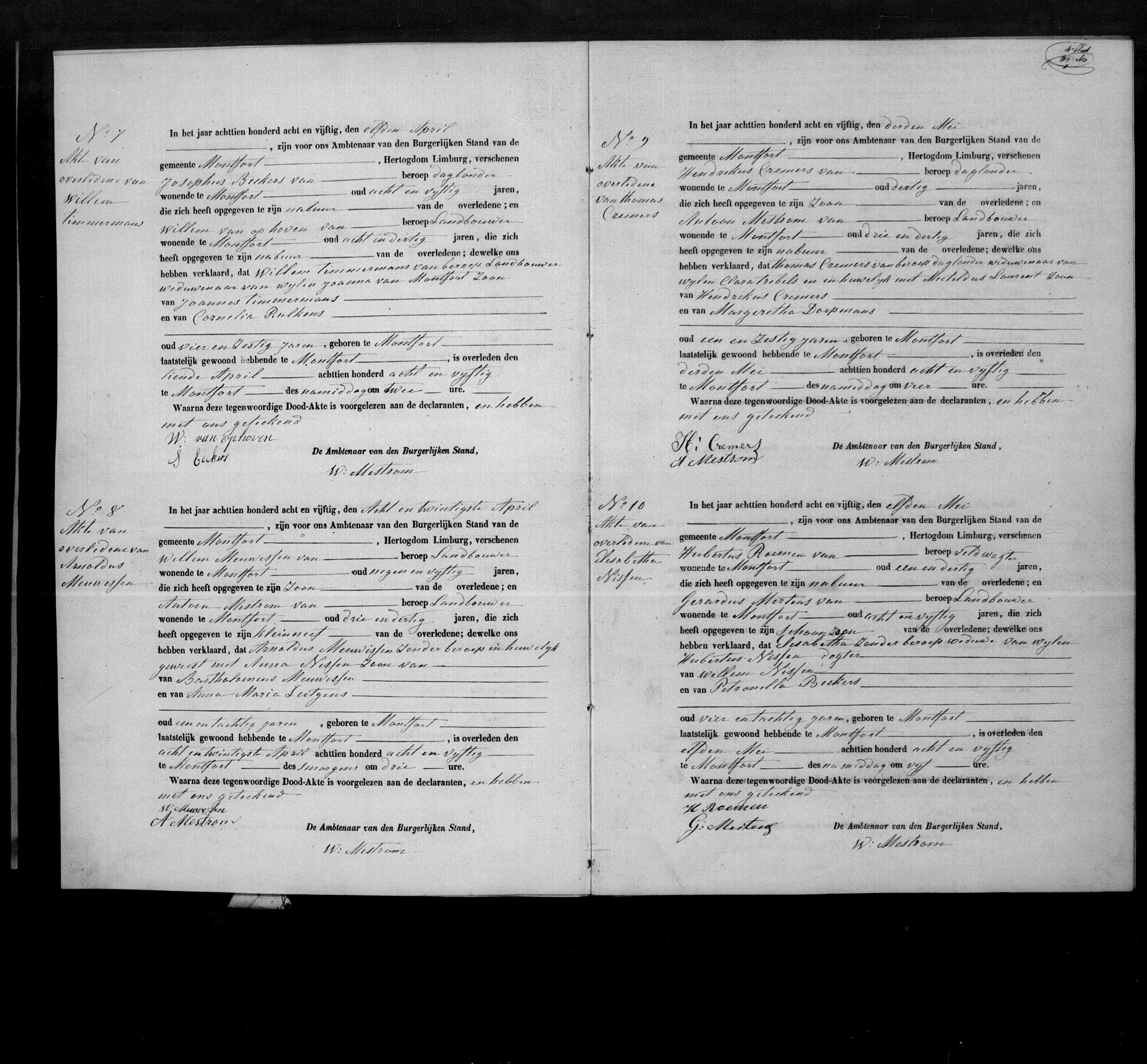 Aangevers: Hubertus Roemen, 41 jaar oud, veldwachter uit Montfort en Gerardus Mertens, 58 jaar oud, landbouwer uit Montfort, schoonzoon van de overledene.