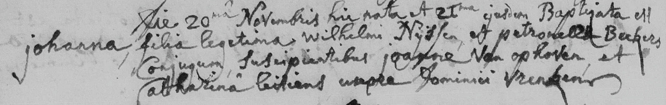 - Doopgetuigen: Joannes Van Ophoven en Catharina Leitiens, echtgenote van Dominicus Vrencken.