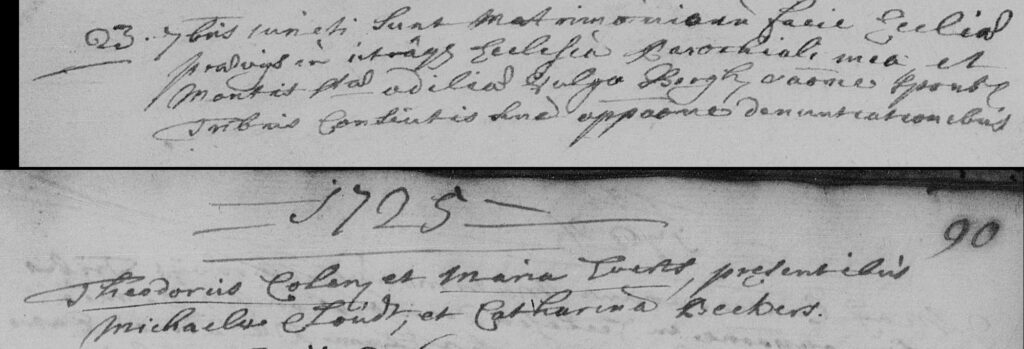 Het huwelijk van 23 september 1725 is vervolgens opgezocht in het originele parochieregister van Montfort.