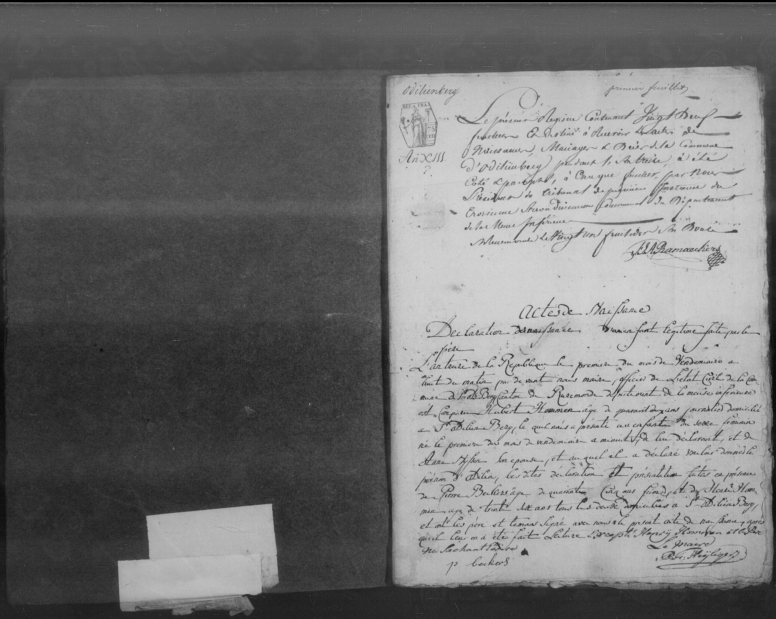 Er is een datumverschil tussen het parochieregister (18 september 1804 ) en de doopakte (1 Vendémiaire jaar XIII of 23 september 1804)