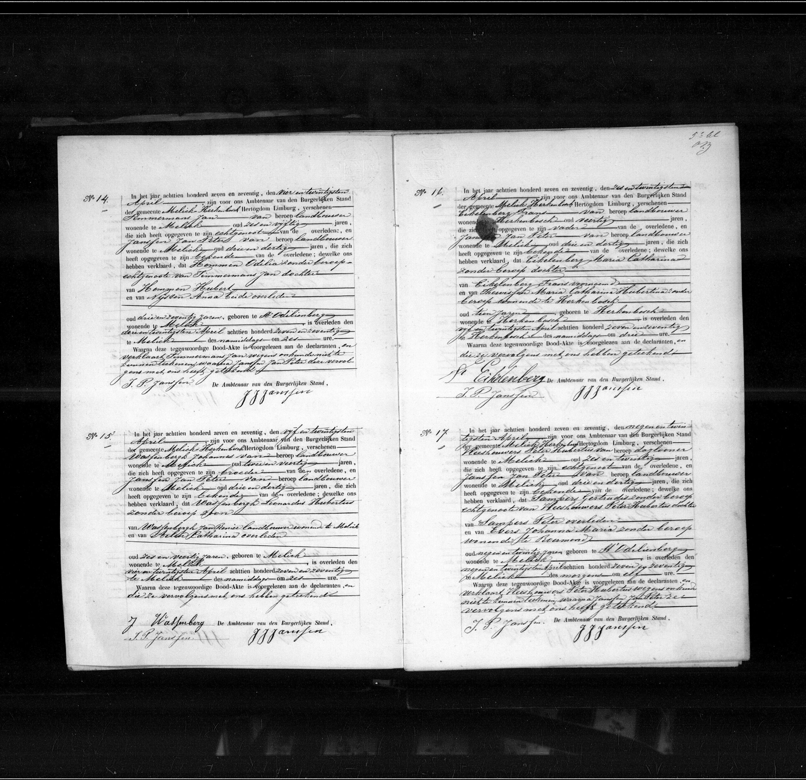 Getuigen: Pierre Beckers, 45 jaar oud, pachter/boer uit Sint Odiliënberg en Henri Hommen, 32 jaar oud, landbouwer uit Sint Odiliënberg.