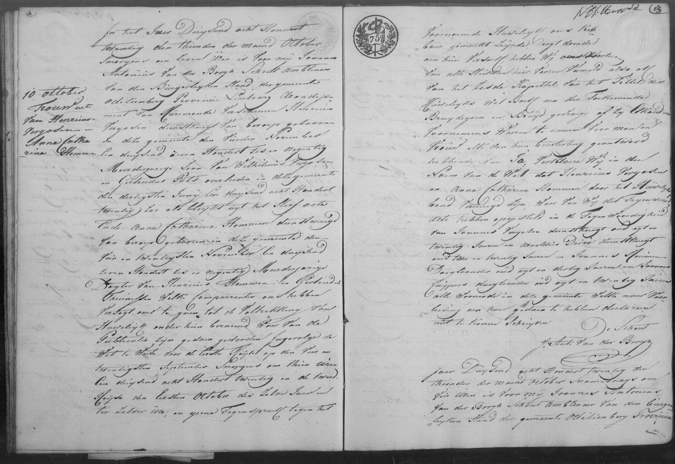 Burgerlijk huwelijk: 10 oktober 1820 in Sint Odiliënberg
