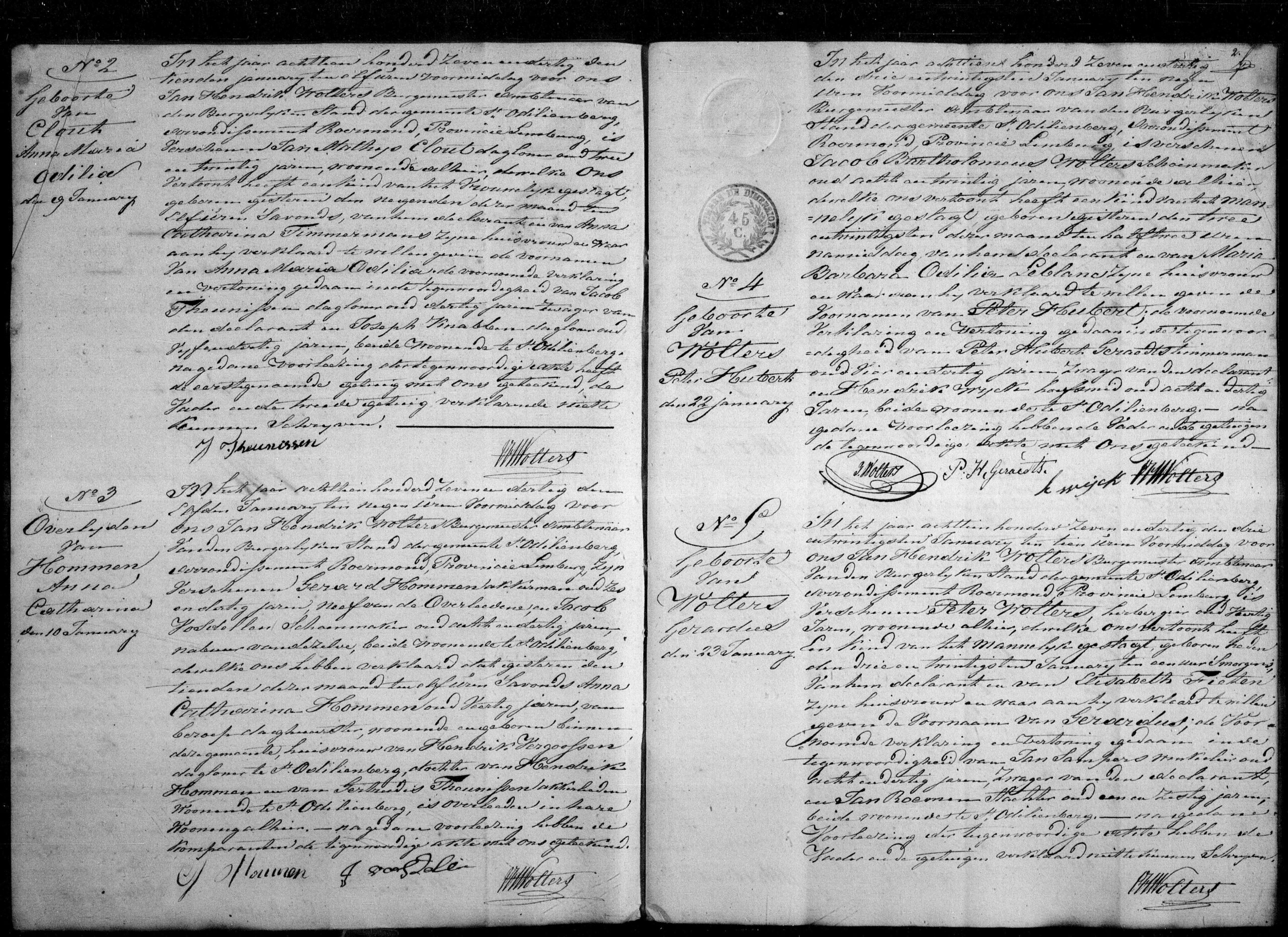 - Getuigen bij het burgerlijk huwelijk: Joannes Vergoossen, 28 jaar oud, dienstknecht uit Sint Odiliënberg, Arnoldus Dries, 22 jaar oud, dienstknecht uit Sint Odiliënberg, Joannes Roumen, 38 jaar oud, dagloner uit Sint Odiliënberg en Joannes Cuijpers, 48 jaar oud, dagloner uit Sint Odiliënberg