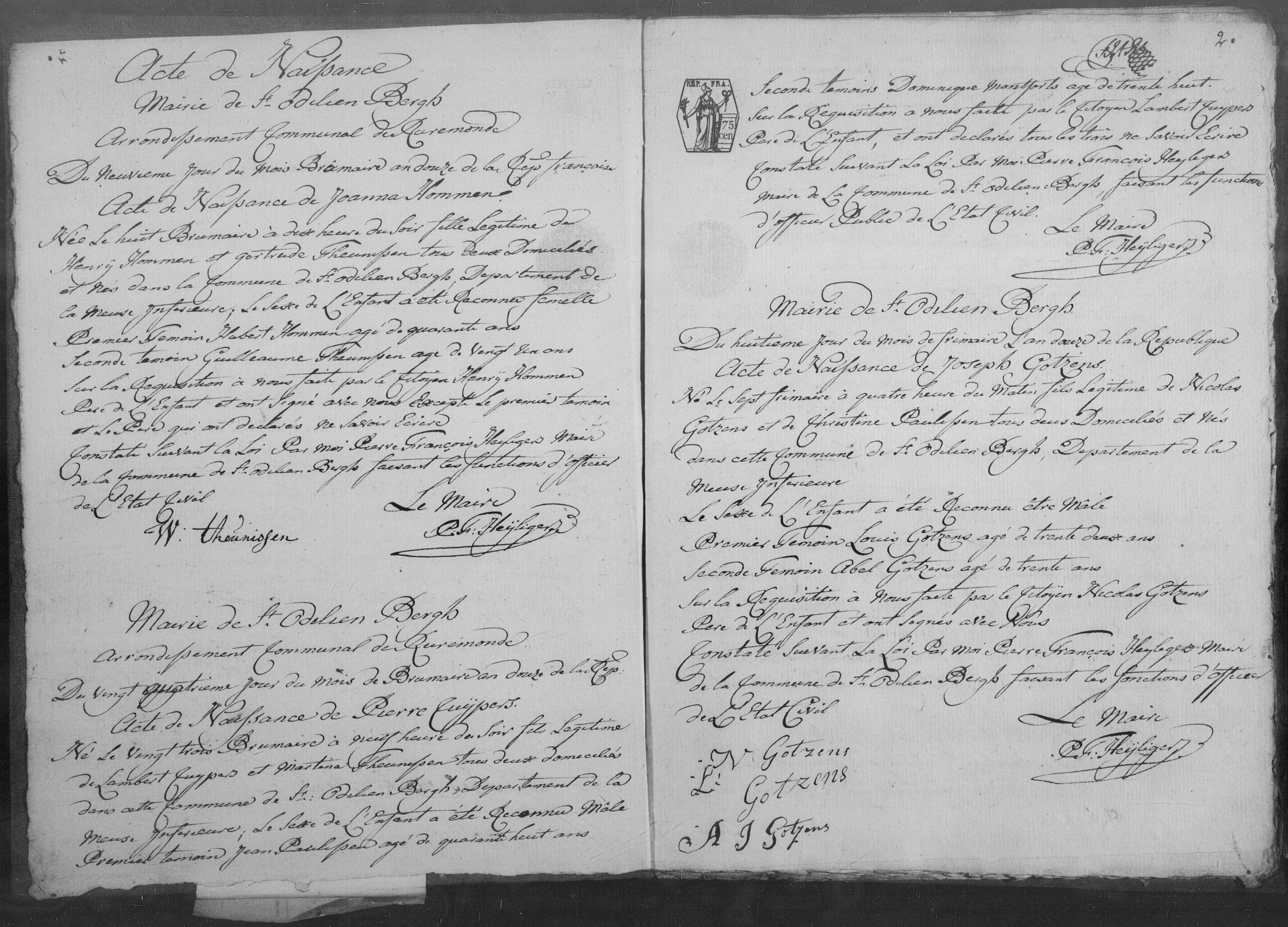 Getuigen: Hubert Hommen, 40 jaar oud, uit Sint Odiliënberg en Guillaume Theunissen, 22 jaar oud, uit Sint Odiliënberg.