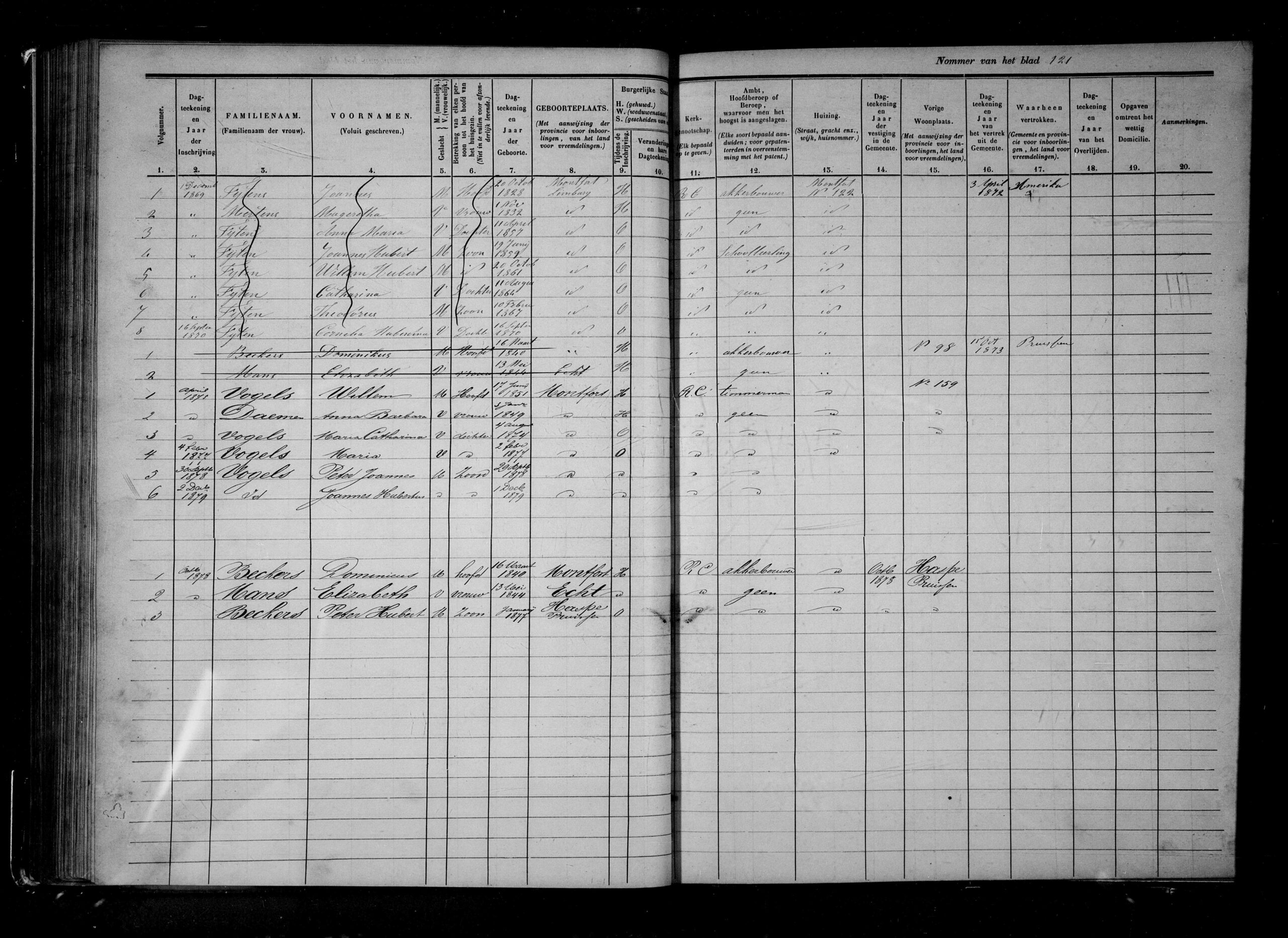 Op 3 april 1872 liet de familie Fijten zich officieel uitschrijven uit het bevolkingsregister van Montfort met als bestemming 'Noord-Amerika'. Met de ruim 1.700 gulden van de openbare verkoop op zak begon het gezin, bestaande uit Joannes (43), Margaretha (39) en hun zes kinderen, aan de lange reis.